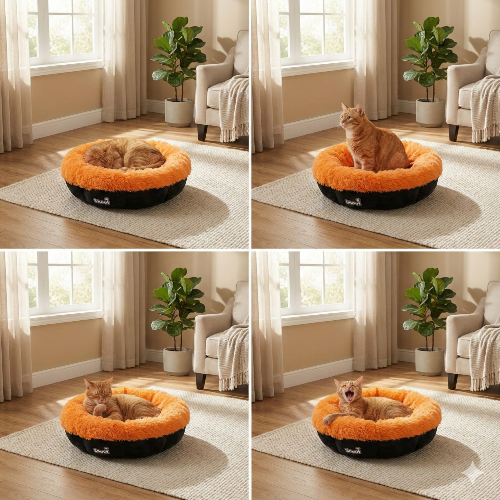 Cat and Dog Bed, Cozy and Comfortable, perfect for your Furry Friend (orange and black)