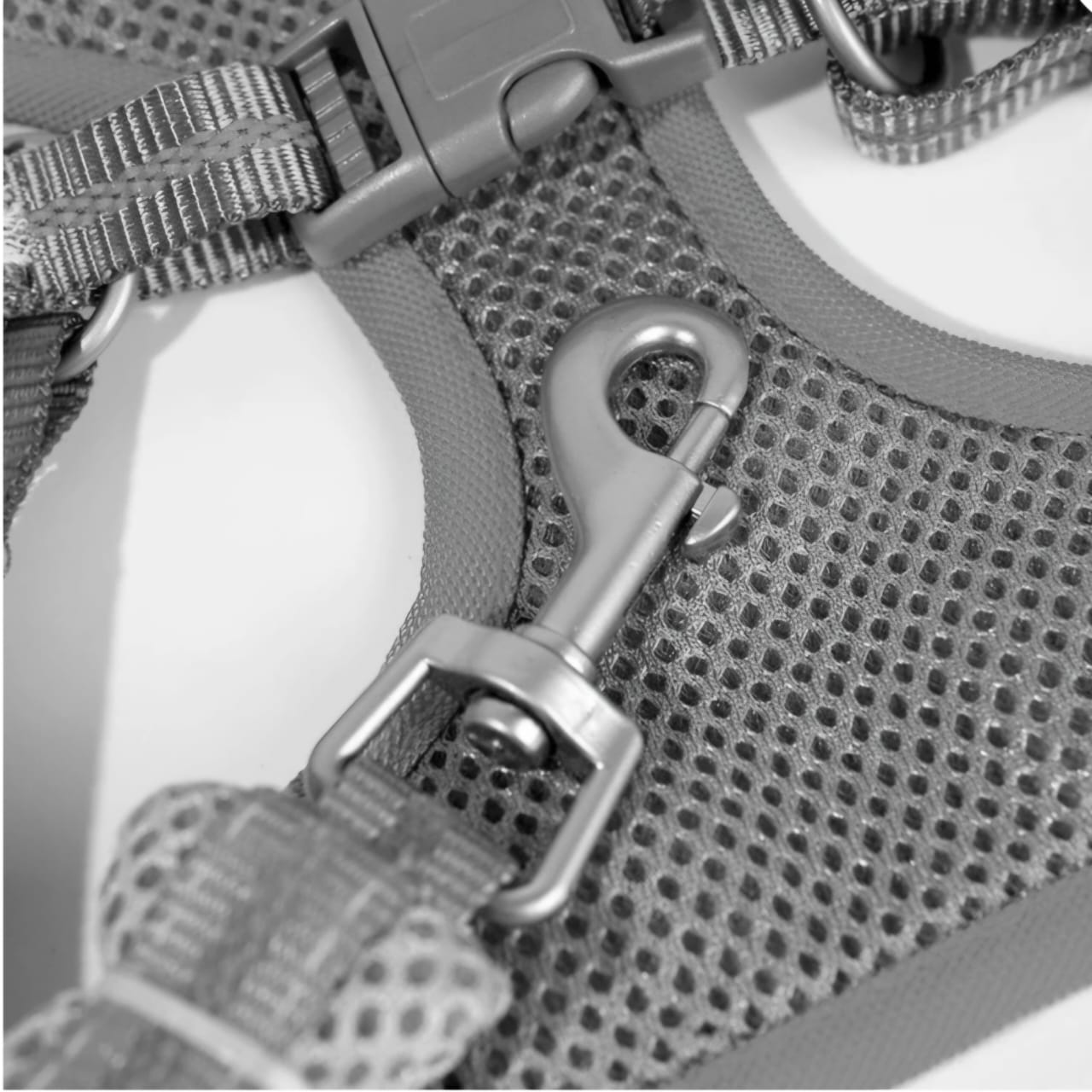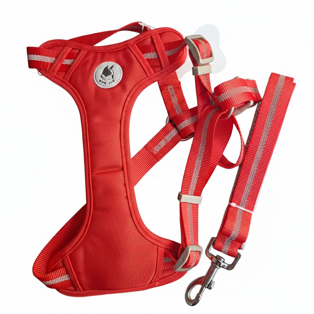 This no-pull harness combines comfort with safety, featuring reflective strips that enhance visibility during evening walks. The adjustable design accommodates dogs of all sizes, from small breeds to larger companions, ensuring a secure yet gentle fit that prevents pulling without restricting movement. Crafted from soft, durable materials, it distributes pressure evenly across the chest and shoulders to reduce strain on the neck. The vibrant orange color adds visibility while the reflective accents catch light for added safety. Ideal for training and daily walks, this harness gives you better control while keeping your dog comfortable and secure.