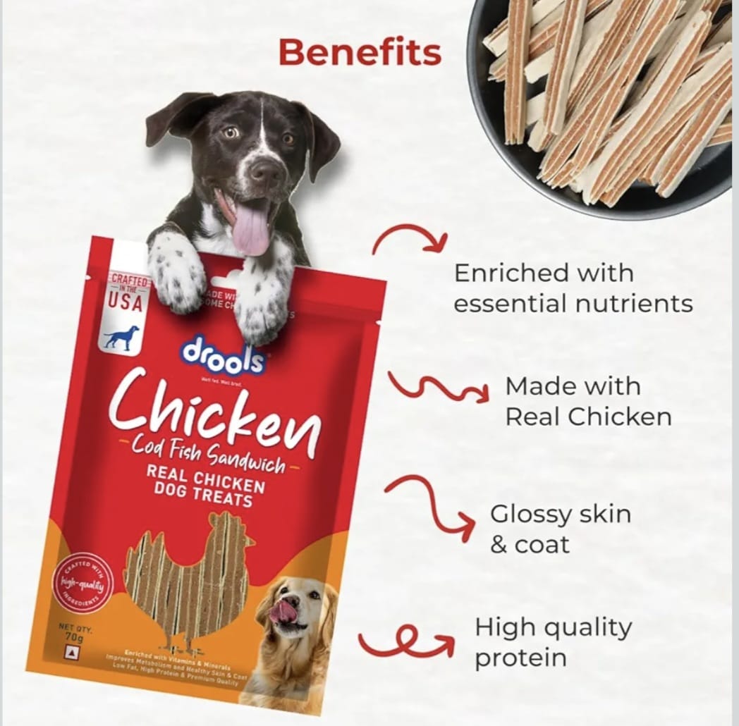 Drools Real Fish Cod Sandwich Dog Treats deliver premium nutrition wrapped in a delicious, easy-to-serve format. Made with real cod fish, these treats provide high-quality protein and omega-3 fatty acids that support your dog's coat health and cognitive function. The sandwich structure makes portion control effortless while keeping your pet engaged and satisfied. Ideal for training rewards or daily snacking, these treats combine nutritional value with the natural appeal of fish that dogs instinctively crave. Perfect for dogs of all sizes seeking wholesome, protein-rich indulgence.
