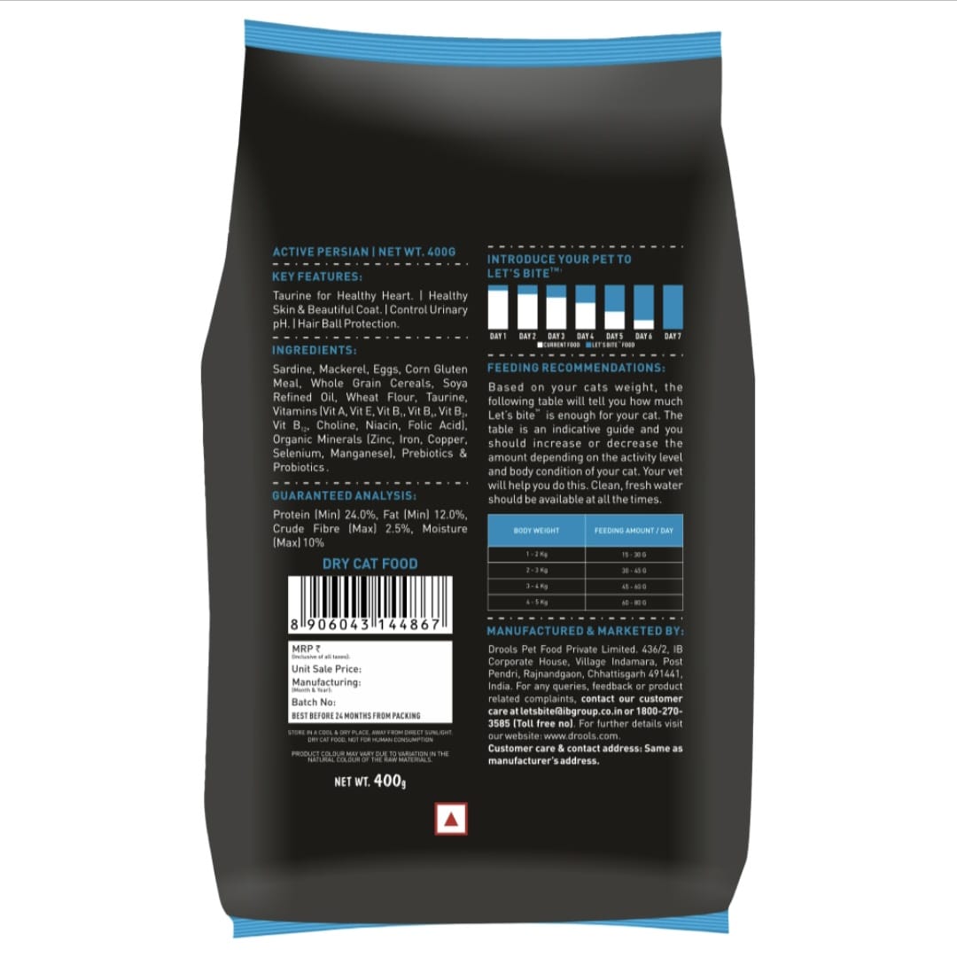 Let's Bite Active Persian Ocean Fish Cat Dry Food delivers premium nutrition tailored for Persian cats' unique dietary needs. Formulated with ocean fish as the primary protein source, this dry food supports lean muscle development and maintains optimal energy levels for indoor felines. The specialized kibble size suits Persian cats' smaller mouths, while the balanced formula promotes healthy digestion and a lustrous coat. Rich in essential omega fatty acids, it nourishes skin health and reduces shedding. With this buy-one-get-one offer, you can stock up on a trusted nutrition solution that keeps your Persian cat thriving with sustained vitality and wellness.