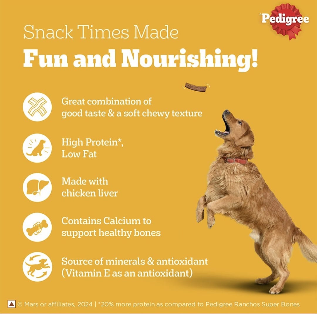 Pedigree Chicken Flavour Tasty Jerky treats deliver premium nutrition in every bite, crafted specifically for dogs who demand quality. These jerky-style treats feature real chicken flavor that dogs love, providing a satisfying chew experience while supporting their overall wellness. Perfect for training rewards, daily snacking, or showing your furry friend some extra affection, these treats combine taste with nutritional value. Made with trusted Pedigree standards, they're formulated to be both delicious and beneficial for your dog's health. Give your canine companion a treat they'll genuinely enjoy.