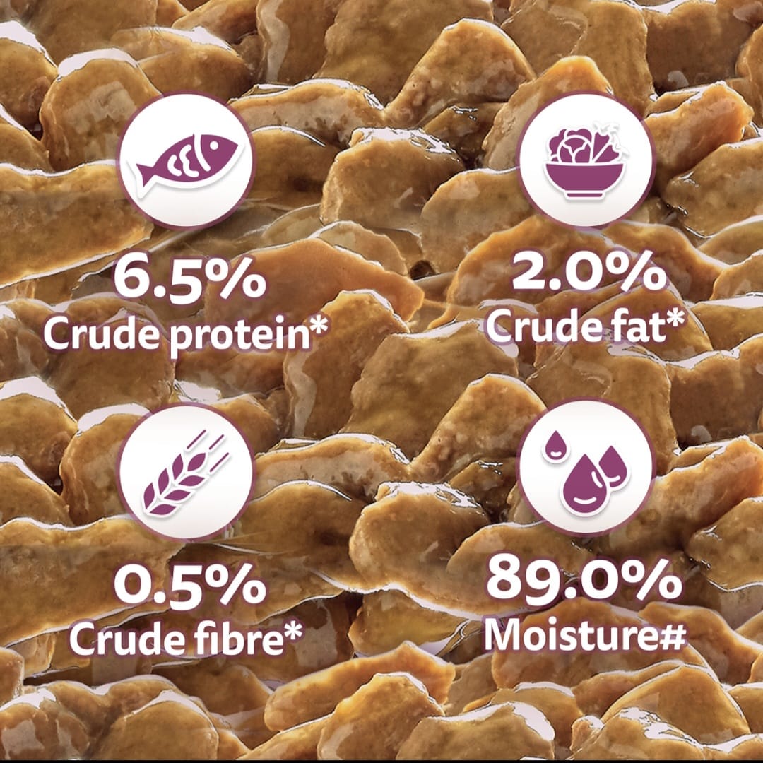Whiskas Tuna in Jelly for Junior Cat is specially formulated to support the nutritional needs of kittens aged 2-12 months during their critical growth phase. This premium wet food combines real tuna with a savory jelly that kittens find irresistible, encouraging healthy eating habits. Rich in essential proteins and balanced nutrients, it promotes strong muscle development and supports cognitive function. The soft, easy-to-eat texture is ideal for young cats transitioning from mother's milk. Each serving delivers complete and balanced nutrition to fuel your kitten's playful energy and development. A trusted choice for nurturing healthy, happy junior cats.